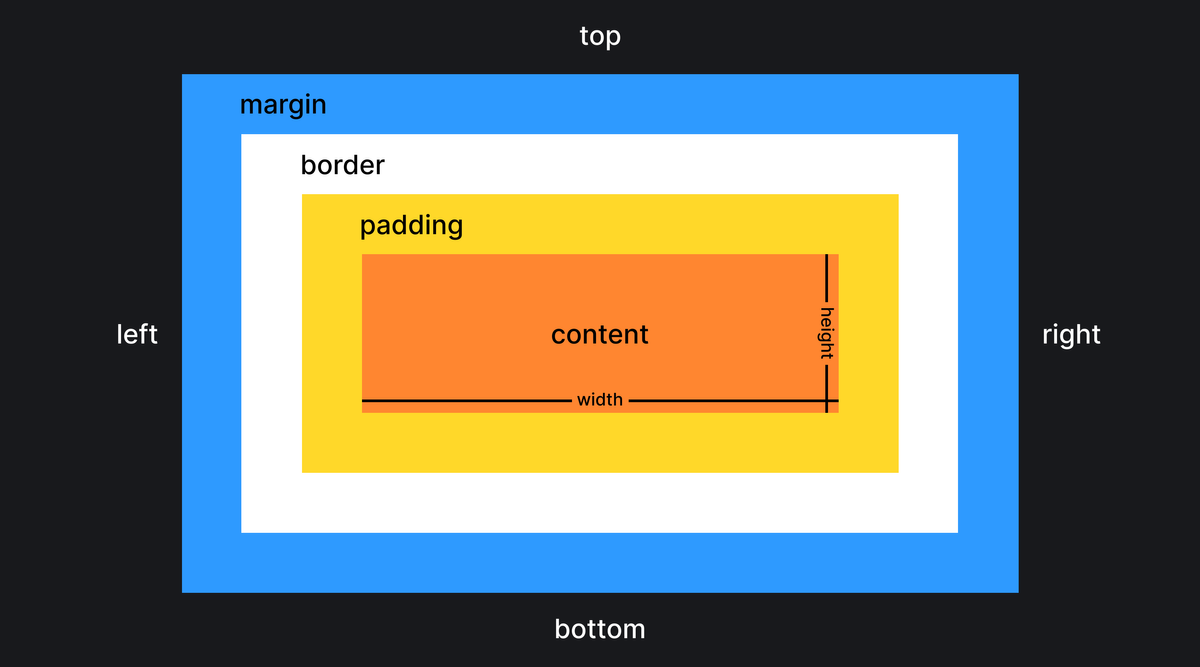 - padding - Der Innenabstand zwischen dem Inhalt und den Rändern des Elements;